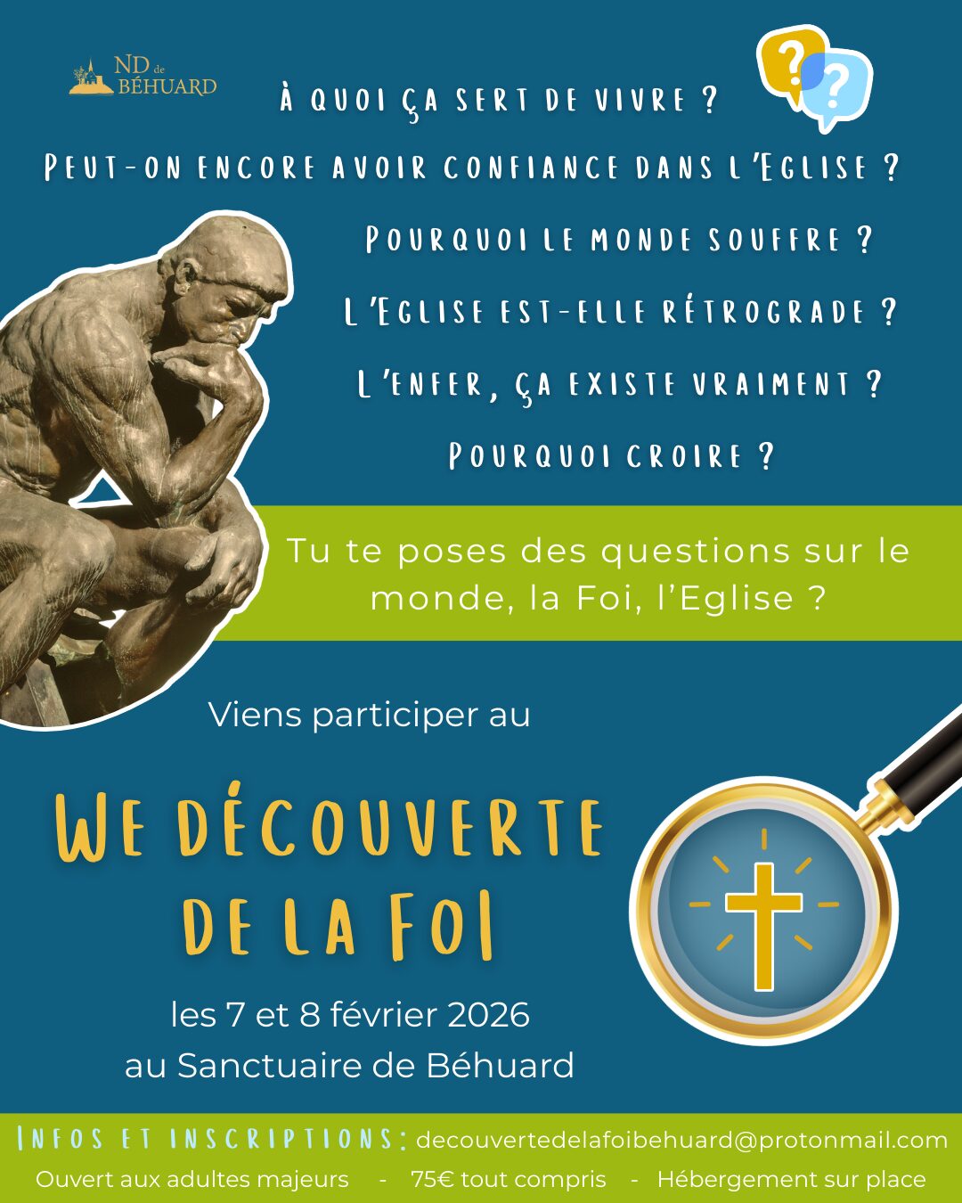 Plus d’infos et inscriptions : decouvertedelafoibehuard@protonmail.com