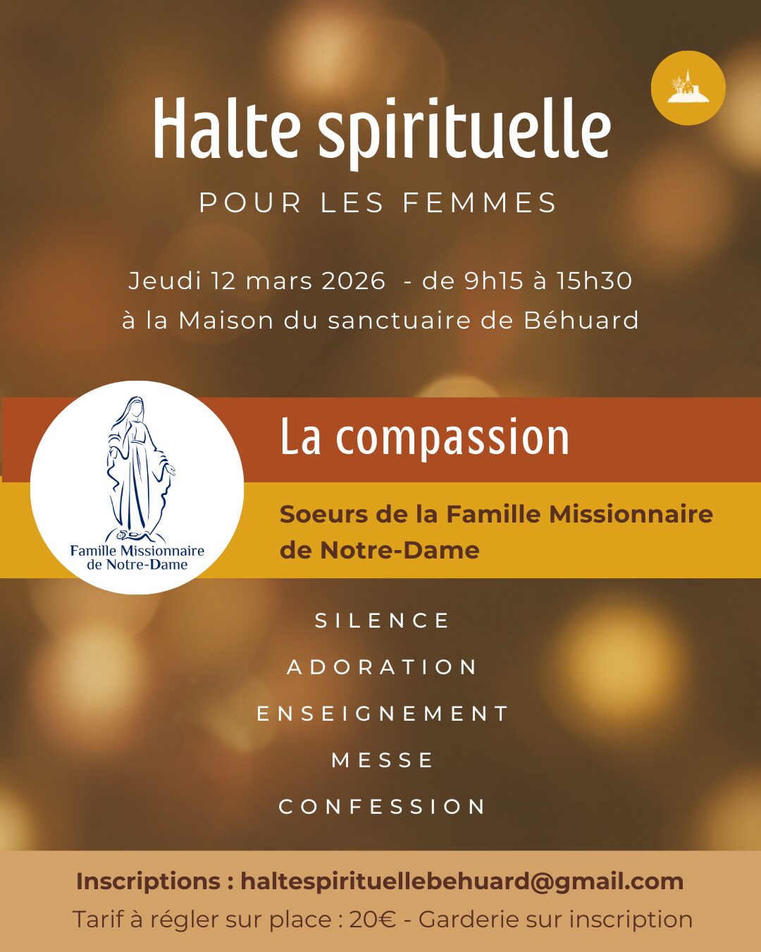 Vous pouvez vous inscrire en envoyant un mail à : haltespirituellebehuard@gmail.com